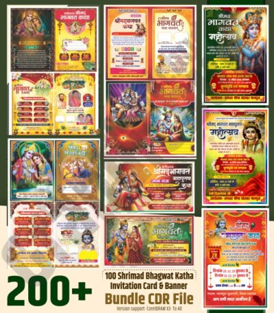 200+ Shrimad Bhagwat Katha Invitation & Banner CDR Bundle