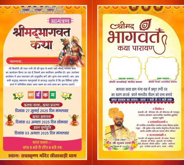 4 Fold Shrimad Bhagwat Katha Card Design CDR File